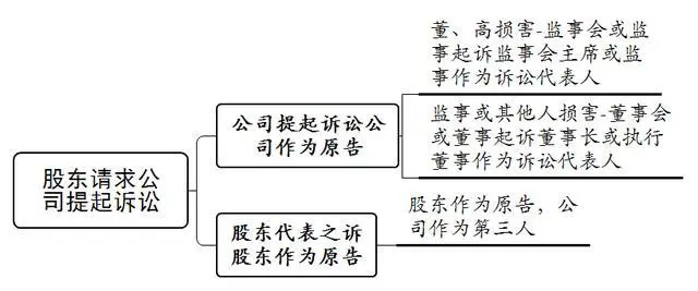 第一,当董事、高级管理人员损害公司利益时,股东可以书面请求监事会或不设监事会公司的监事起诉;此时应当列公司为原告,由监事会主席或监事代表公司进行诉讼,监事会主席或监事列为公司的诉讼代表人。